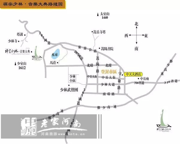 鄭州市內(nèi)沿中原路向西一直走到西四環(huán)后向南,上鄭少高速,在登封西下高速后,一路指示牌帶您前往演出景區(qū)。