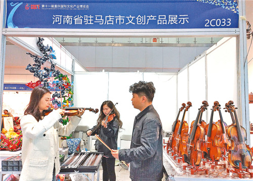 4月7日,第十一屆重慶國際文化產(chǎn)業(yè)博覽會(以下簡稱重慶文博會)在重慶國際會議展覽中心(南坪)啟幕。駐馬店的香包、布老虎,確山小提琴等相關(guān)文創(chuàng)產(chǎn)品精彩亮相,受到觀展市民追捧。