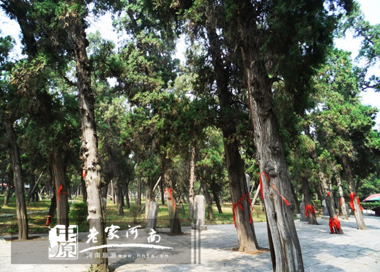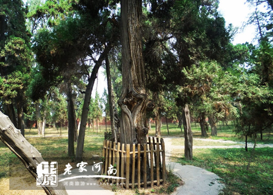 在孟津東漢開國皇帝劉秀的陵園,聚集了一千多棵隋唐所植古柏,這些古柏已歷經(jīng)千百年的風(fēng)雨,依然蓊郁挺拔。大自然的鬼斧神功把它們雕刻的形態(tài)各異、千姿百態(tài),有的如巨龍盤繞、有的象驚鹿探頭,無不形神兼?zhèn)洌钊M生。很多由游客發(fā)現(xiàn)的柏樹上奇觀,如銀蛇纏柏、赤膽忠心,無不惟妙惟肖。我們把這些古柏上的奇觀與劉秀有關(guān)的民間傳說,歷史典故結(jié)合起來,賦予這些古柏更深文化的內(nèi)涵,平添了大家漢陵之旅的樂趣。