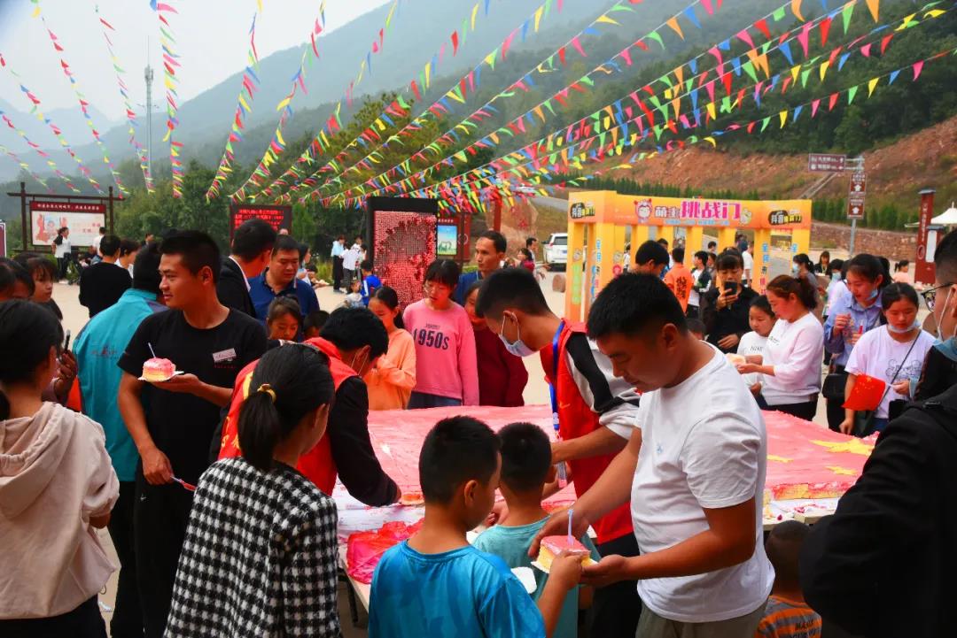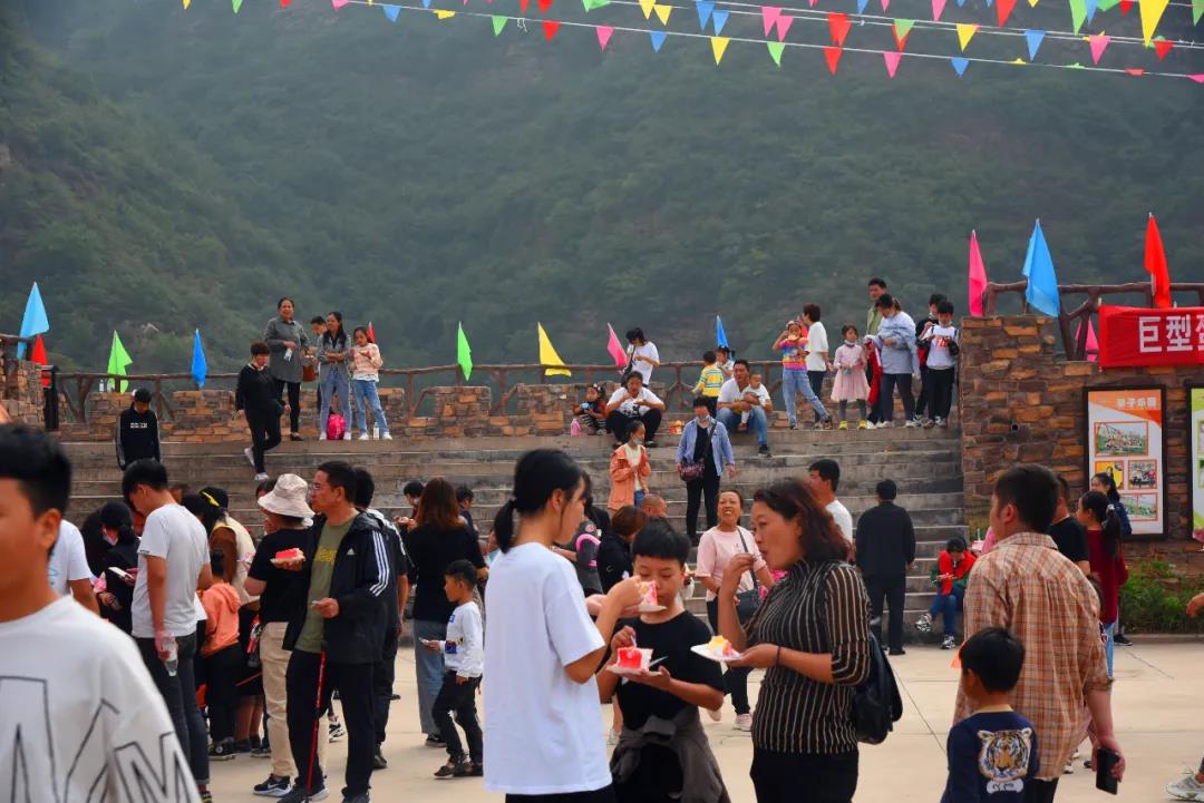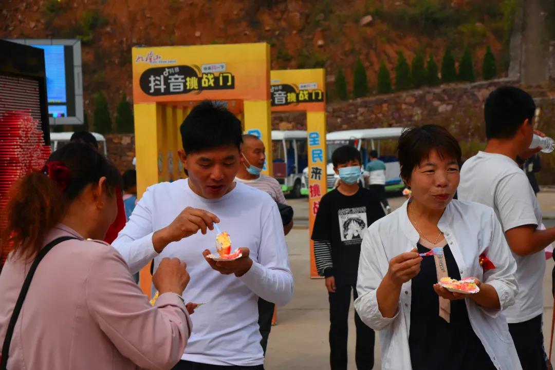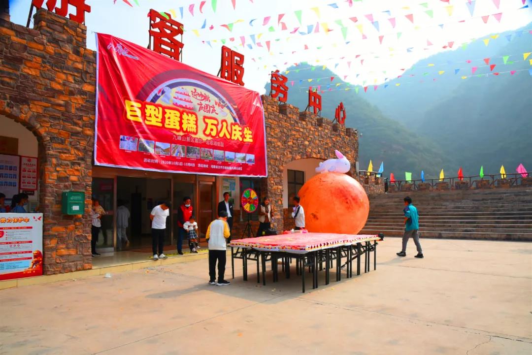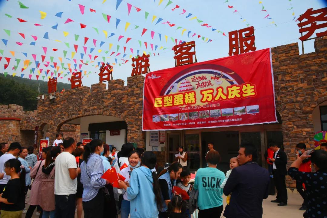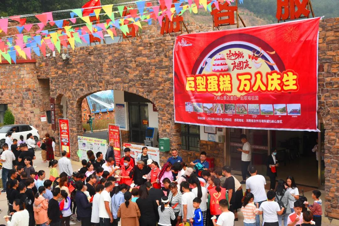游客們拿著祝福祖國(guó)繁榮昌盛,國(guó)泰民安的蛋糕