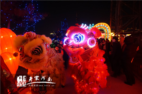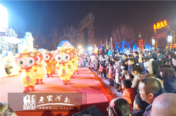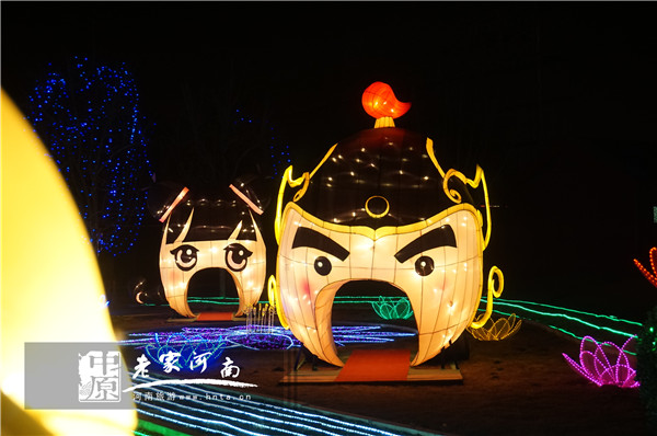 造型新穎、寓意豐富的燈組不勝枚舉。諸如展示北宋楊家名將的穆桂英、楊宗保、楊排風(fēng)卡通形象的《萌將迎春》,利用8盞旋轉(zhuǎn)宮燈展示楊家將人物年畫的《忠孝仁義》,以“嫦娥舞袖”“花好月圓”為畫面內(nèi)容的《闔家歡樂》,以及《金雞報曉》《聚寶納!贰锻郁[春》《吉祥富貴》等,均造型各異、美不勝收。