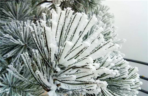 水汽凝華升騰掛在樹梢,大自然的溫度鬼斧神工將它留駐,撥開眼前的云海繚繞,枝丫之上一片耀眼閃亮。