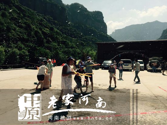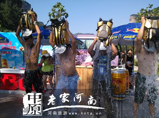 2015年7月25日太行大峽谷景區(qū)聯(lián)合紅牛功能型運動飲料在太行大峽谷漂流服務(wù)區(qū)舉辦“清涼16°、嬉水第五季-紅牛能量濕身派對”,吸引眾多游客前來參與體驗。