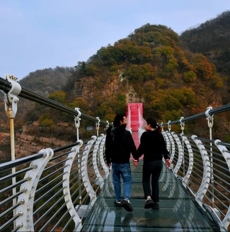 玻璃橋位于九女峽半山腰,高懸于300多米的高空,行走在上面,如同在云端漫步。