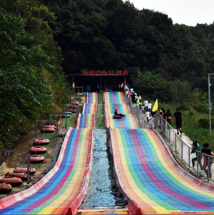 高山旱滑位于九女峽半山腰,蜿蜒曲折的滑道穿梭在山間、林間,長(zhǎng)達(dá)600多米的跑道,是 下山者的福音。