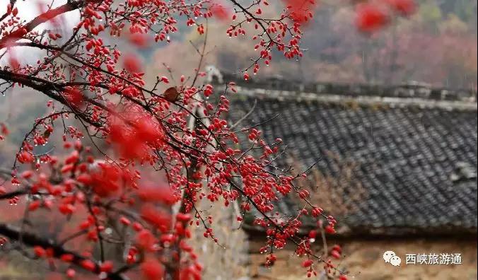 家家戶戶古風(fēng)古色的民宿,院落里有四季的花,山茱萸隨處可見。山坡旁,路邊,房前屋后,那一片片火紅,那一串串晶瑩,似瑪瑙,似寶石。蘊(yùn)含著山鄉(xiāng)人民的勤勞和汗水,豐收和希望。真的是“房舍新新茱萸紅”,魚庫村的民宿可以為游客提供休息,精神放松及各種文化體驗(yàn)。