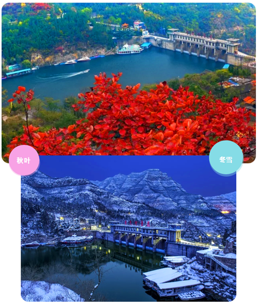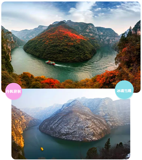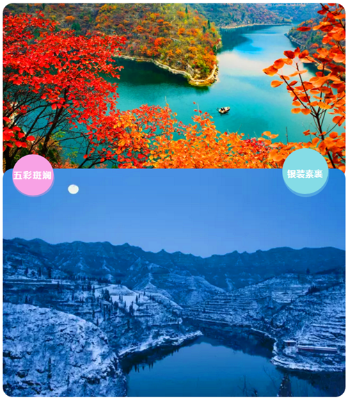 青天河的標(biāo)志性景觀——鯨魚灣:秋天盛裝迎賓,靜待八方來客。冬天銀裝素裹,盡展冰魂雪魄。