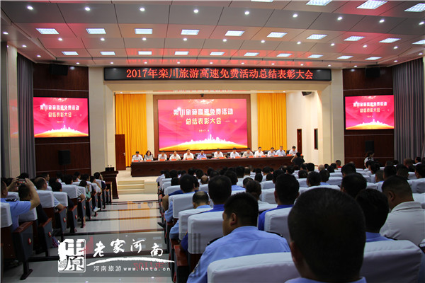 2017年8月29日,河南欒川舉辦“自駕游欒川·高速全免費(fèi)”旅游扶貧公益活動總結(jié)表彰大會,縣四大班子領(lǐng)導(dǎo),參與本次高速免費(fèi)活動的工作人員、志愿者、新聞工作者、涉旅企業(yè)負(fù)責(zé)人、農(nóng)家賓館負(fù)責(zé)人等400名代表參加了本次大會。會上,與會人員觀看了以《這二十天》為題的高速免費(fèi)活動工作紀(jì)錄片;聽取了由洛陽師范學(xué)院課題組編寫的《欒川高速免費(fèi)活動效應(yīng)評估報告》;同時對本次活動中涌現(xiàn)出的十大暖心人物、先進(jìn)個人、優(yōu)秀新聞工作者進(jìn)行了表彰。