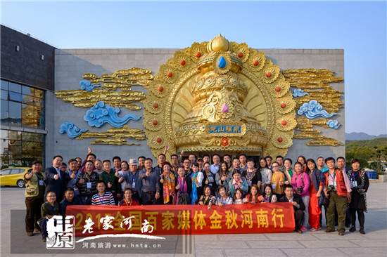 2015全國(guó)百家網(wǎng)絡(luò)媒體金秋河南行參觀體驗(yàn)堯山福泉溫泉合影(任紅兵攝影)