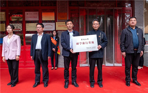 張志強(qiáng)為廷懷汝瓷非物質(zhì)文化遺產(chǎn)創(chuàng)意園頒發(fā)“平頂山市研學(xué)旅行基地”匾牌。
