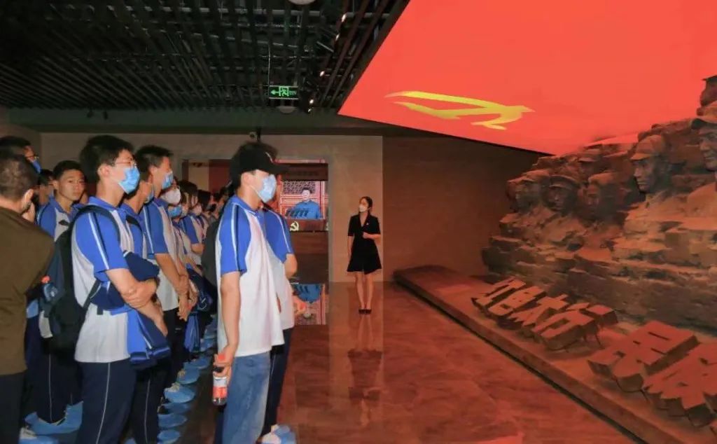 莊嚴的升國旗儀式+場景式紅色黨史教育學習+沉浸式現(xiàn)場教育學習,耳濡目染當代人民艱苦奮斗的革命精神。