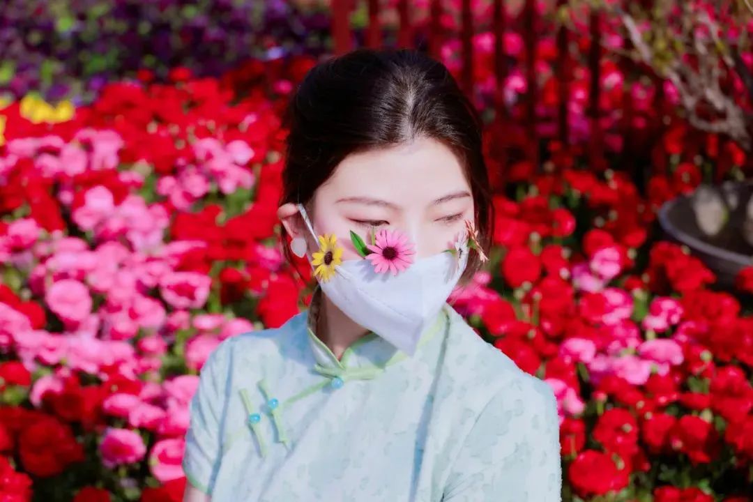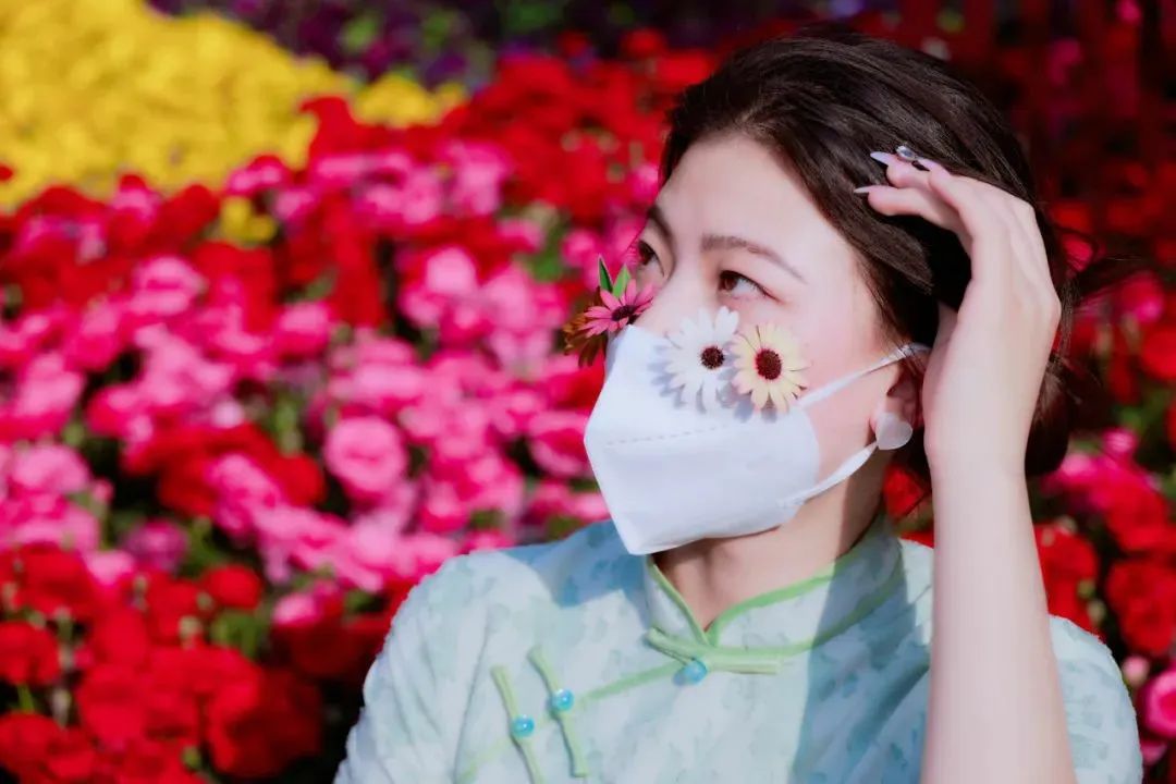 “口罩+花花“的春日氛圍感大片