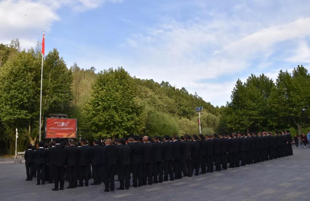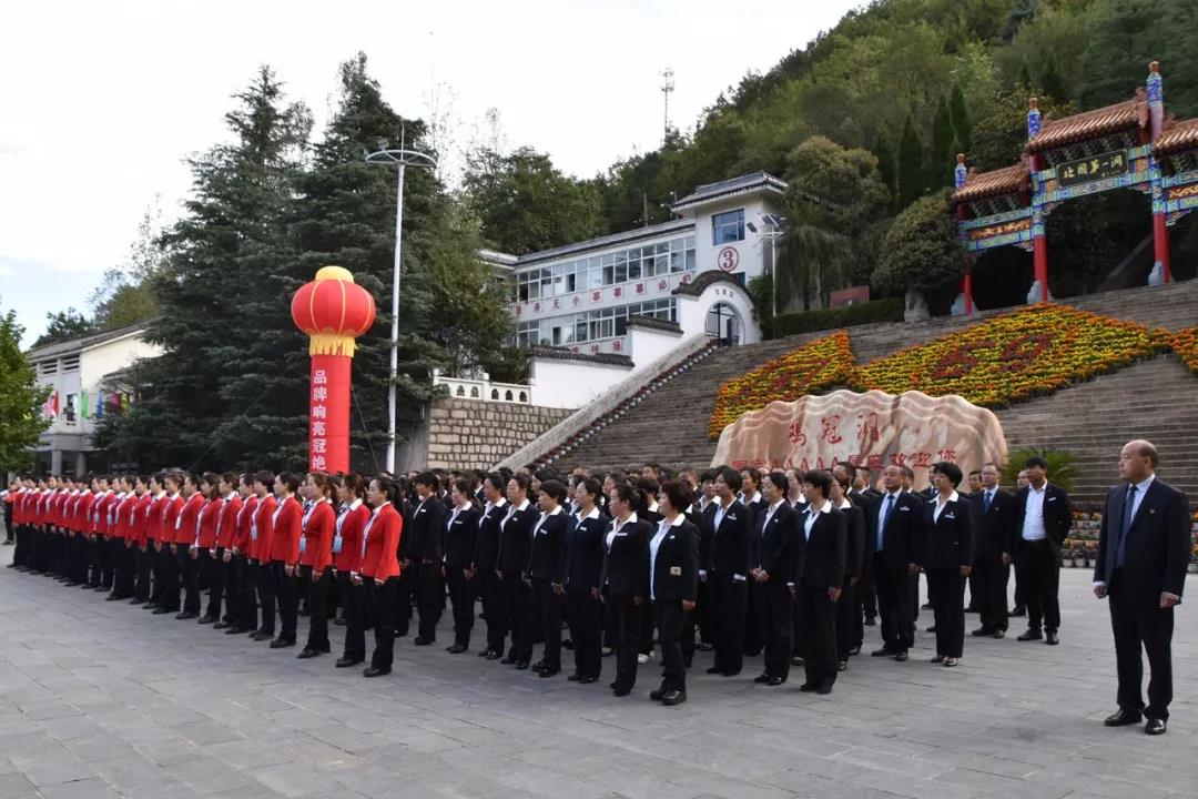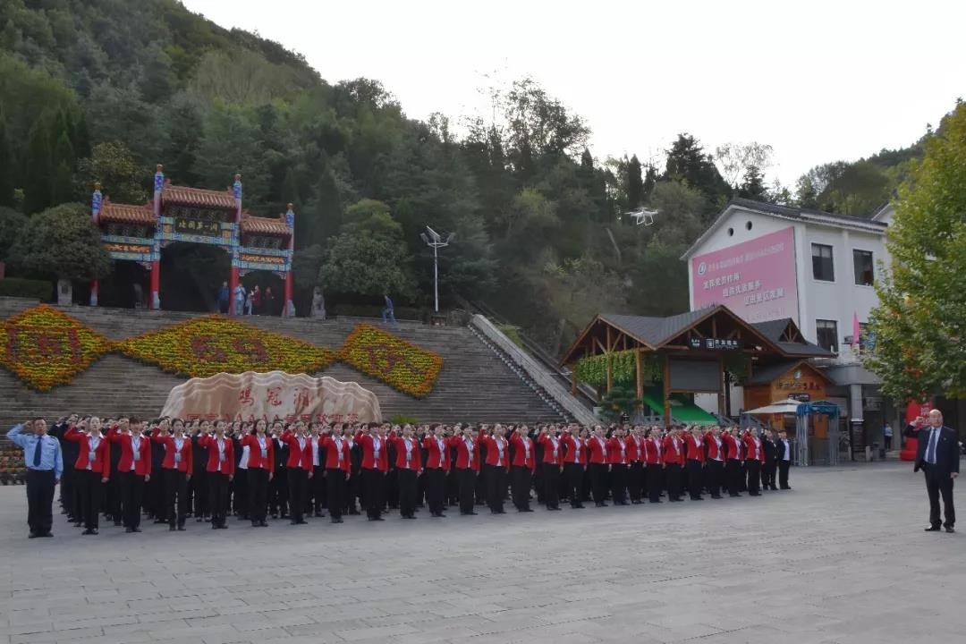 10月1日八時(shí)整,雞冠洞景區(qū)全體在崗職工統(tǒng)一著裝、神采飛揚(yáng)地舉行了莊嚴(yán)肅穆的升國(guó)旗儀式。