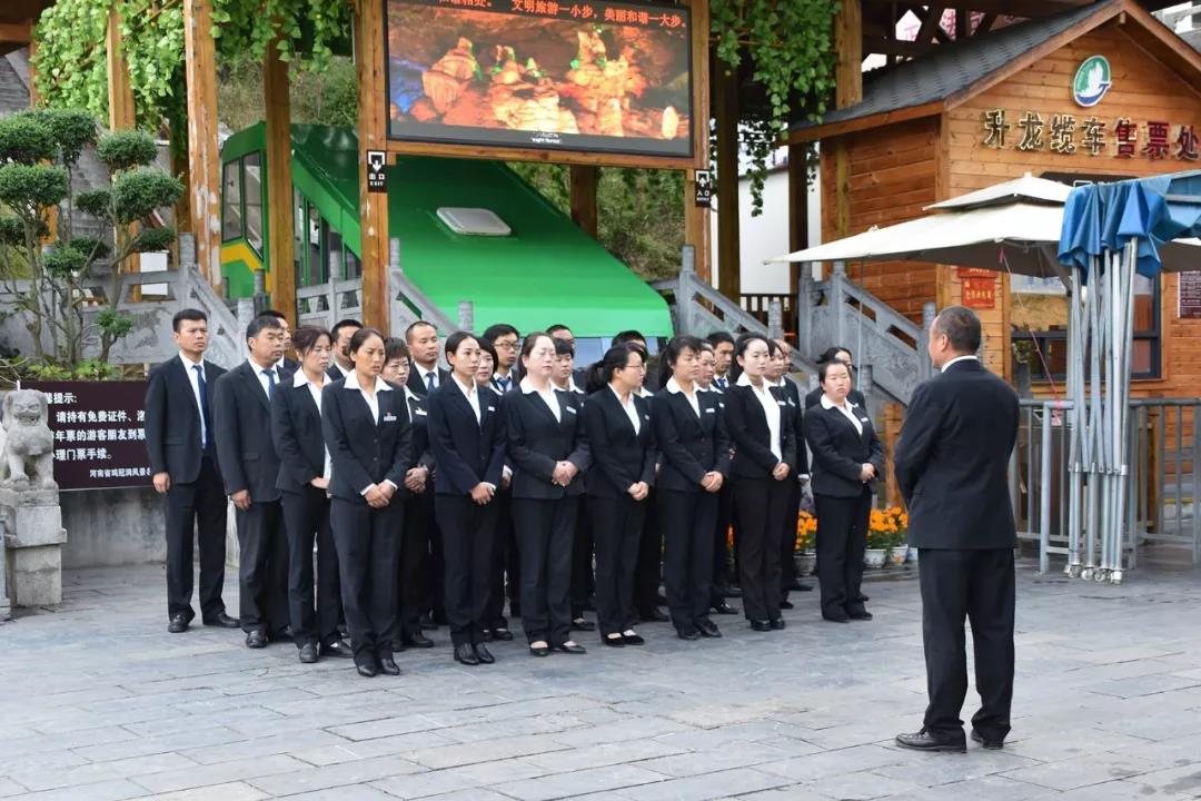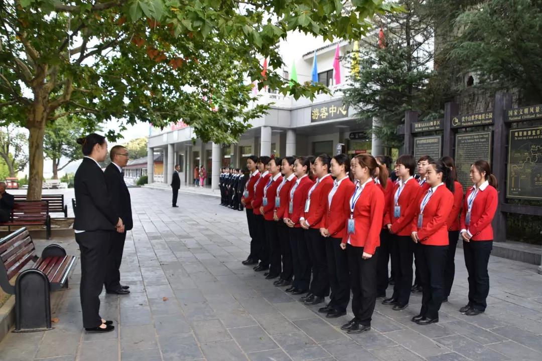 儀式結(jié)束后,在景區(qū)中心廣場(chǎng),各部室迅速行動(dòng),認(rèn)真組織召開了“周一班前會(huì)”,對(duì)2018年“十一”接待工作進(jìn)行具體細(xì)致的安排部署。這是景區(qū)推行的一種創(chuàng)新型管理模式,目的在于鍛煉廣大中層干部的統(tǒng)籌安排能力和責(zé)任擔(dān)當(dāng)意識(shí),提高執(zhí)行力,激發(fā)基層職工的工作積極性,展現(xiàn)景區(qū)良好的精神風(fēng)貌,全面做好服務(wù)質(zhì)量提升工作。