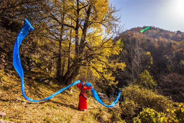 3.穿紅色、白色服裝或帶一個(gè)小玩偶,與銀杏拍照更配。