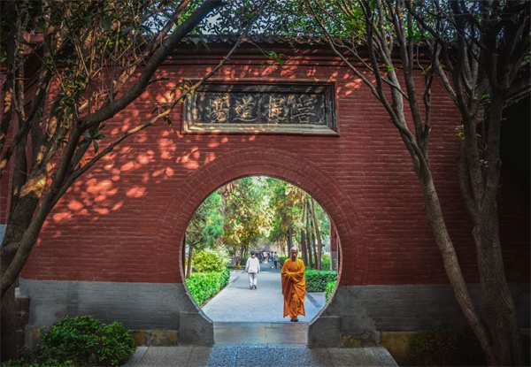 沿著臺(tái)階漫步,耳邊禪音裊裊,古樹參天、林木陰翳,靜氣凝神間瞬間被這古樹、古寺營(yíng)造出的靜謐所治愈。