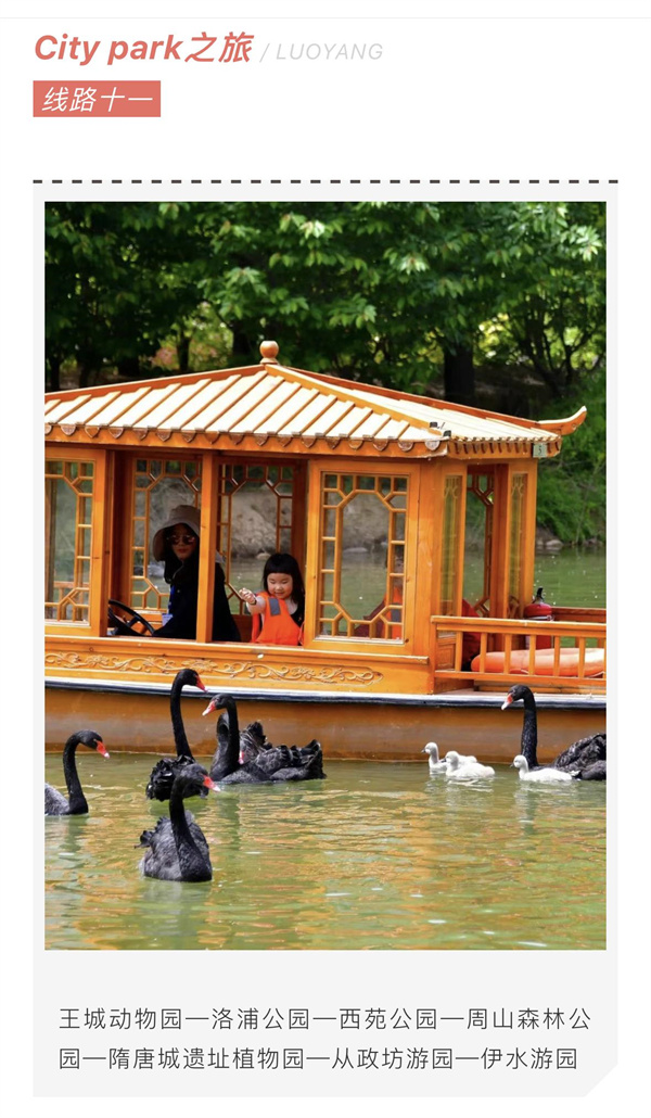 沒計劃遠游?那就“就近原則”。與家人到家門口的公園逛一逛~這條線路匯集了洛陽市區(qū)內(nèi)多個特色公園,是放松身心的好去處。