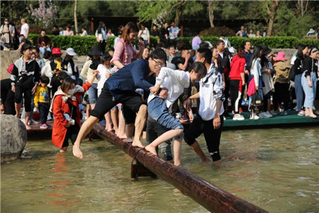 網(wǎng)紅搖擺橋、浮橋、獨(dú)木橋、木鏈樁……橋上對戰(zhàn)、花式落水、圍觀吃瓜,掀起嗨玩高潮!