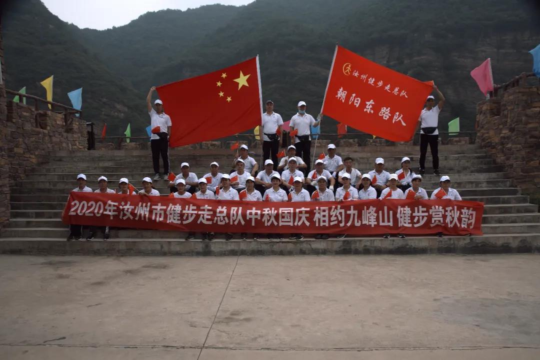 在舉國上下熱烈歡迎祖國71華誕來臨之際,汝州三個健走團數(shù)十余名隊員在9月26日早九點整,舉行了隆重的慶生儀式。九峰山景區(qū)的一個小廣場上,用大功率音箱里傳出《歌唱祖國》的優(yōu)美旋律,身穿嶄新隊服的隊員們團團圍繞在五星紅旗周圍,每人手舉鮮紅的小國旗,高喊著“祖國萬歲"“我愛你,中國"的響亮口號,氣氛進入到高潮,隨之,大家排著整整齊齊的隊伍,在五星紅旗及健走團隊旗的引領(lǐng)下,開始了長達幾小時的山路健走,上百頂鮮艷的小國旗吸引了無數(shù)游客的駐足觀望及嘖嘖稱贊,大大激發(fā)了全景區(qū)人民的愛國熱情!