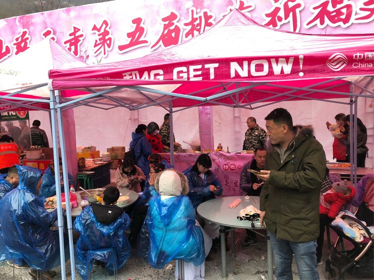 桃花節(jié)現(xiàn)場景區(qū)還精心準(zhǔn)備了當(dāng)?shù)靥厣朗,游客在賞桃花、看演出的同時能夠品嘗到各色美食。