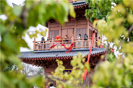 鳳棲湖景區(qū)內(nèi)的古裝快閃表演,備受游客青睞。 徐澤源 攝