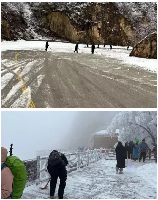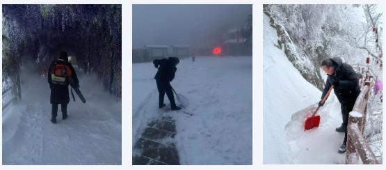 (景區(qū)職工提前到崗清除積雪)