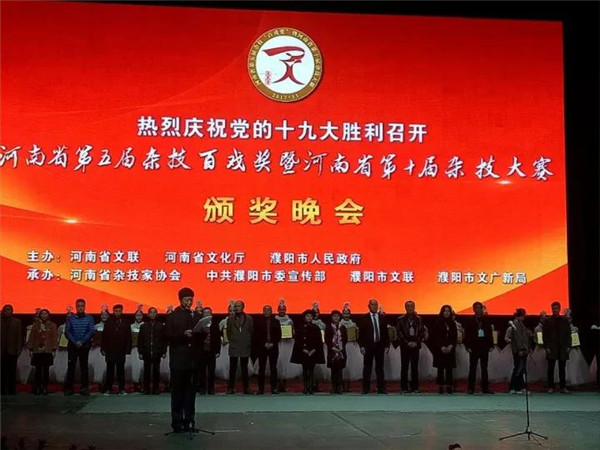 11月29日晚,河南省第五屆雜技“百戲獎”暨河南省第十屆雜技大賽總決賽及頒獎晚會在濮陽舉行。