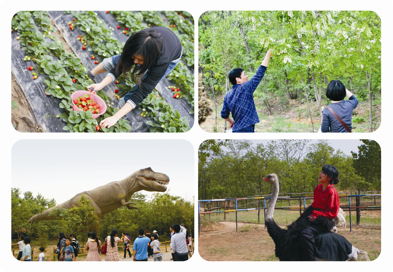 五一小長假,正是鴕鳥園千畝槐花飄香,萬畝草莓紅遍大地的時節(jié)。淡淡的槐香,彌漫在整個園區(qū),嫣紅的草莓,香甜誘人,游人樂在其中,看恐龍、賞槐花、摘草莓、吃燒烤,娛樂休閑,體驗著2014鴕鳥園槐花草莓旅游文化節(jié)各種活動的精彩。