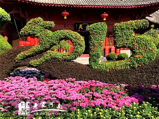 10月18日,為期一個(gè)月的中國(開封)第33屆菊花文化節(jié)正式展出,清明上河園作為本次活動(dòng)的主會場,以“宋文化、民俗文化、菊文化”為主題。整個(gè)景區(qū)的花會布展分為歡樂迎賓區(qū)、精品薈萃區(qū)、菊香雅韻區(qū)及國際菊花會展區(qū)四大區(qū)域,展線總長2000余米,景點(diǎn)大小共40余個(gè),布展菊花多達(dá)10萬余盆。其中,“三陽(羊)開泰”、“麒麟納福”、“招財(cái)進(jìn)寶”、“中國夢”、“四方羊尊”、“菊茶溢香”、“孔雀之戀”等菊花造型搶人眼球。不僅如此,景區(qū)采用大量色彩艷麗、花朵飽滿的菊花新品種,營造五彩繽紛的祥和氣氛,構(gòu)建一個(gè)“滿城盡帶黃金甲”的盛景。