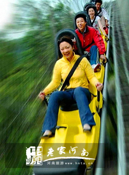 邂逅驚險刺激。依依不舍的讓8億年的地質(zhì)造化在相機(jī)、手機(jī)里定格,一步三回頭的坐上滑道下山,耳邊清涼的山風(fēng)、撲面醉人的花香、身邊飛馳而過的美景,如是在花海里飄逸,在綠茵中穿梭,盡享超越的速度與激情!