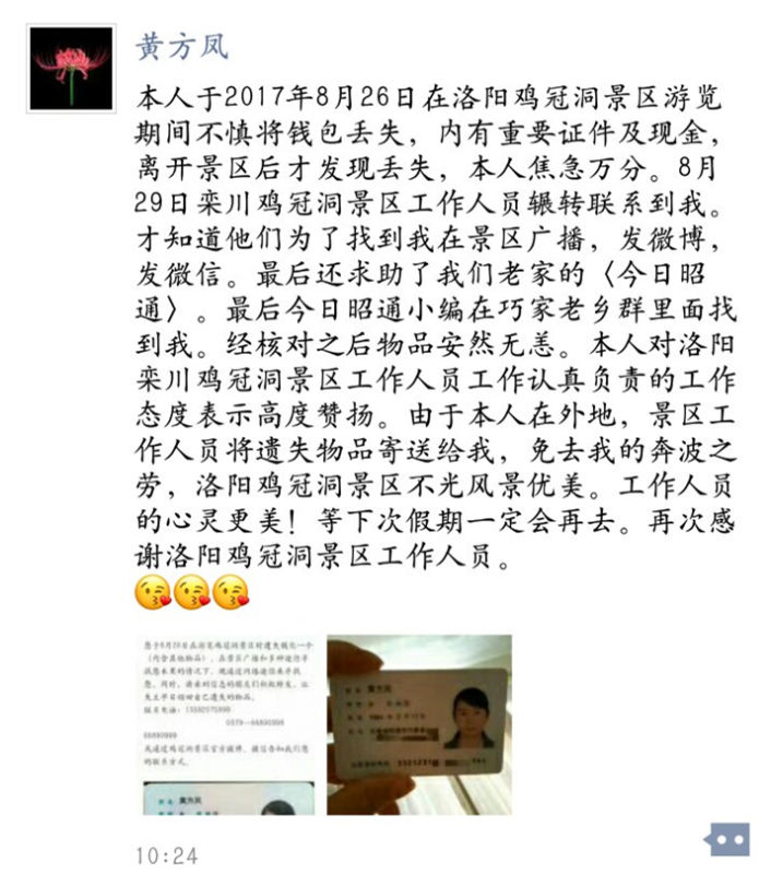 雞冠洞:女子錢(qián)包遺落景區(qū),他們輾轉(zhuǎn)追尋失主