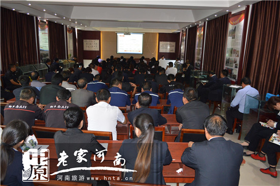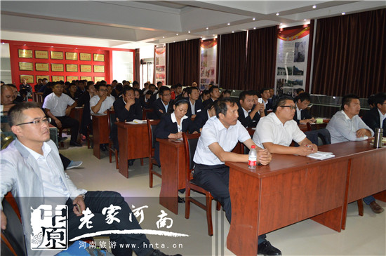 培訓(xùn)由新鄉(xiāng)南太行旅游有限公司創(chuàng)建標(biāo)準(zhǔn)化景區(qū)辦公室主任李吾州主講。