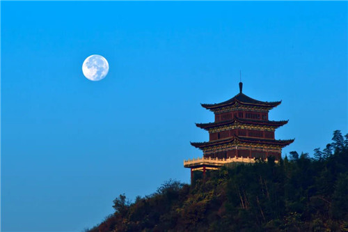 如果說西九華山最適合登高賞月的地方在哪里,那一定是尋根樓!滿月和尋根樓交相輝映!好一片美景映入眼簾!