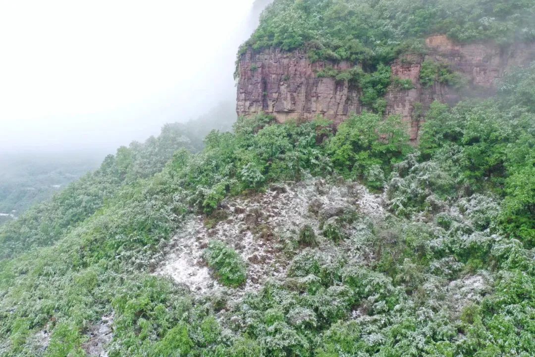 4月21日晚至22日晨,林州太行大峽谷內(nèi),雪罩青山綠水,對(duì)比明顯,形成獨(dú)特風(fēng)景……