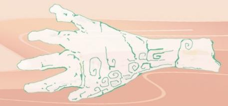 比一般成人手略小,右手,呈微曲半握狀,五指比例適中,關(guān)節(jié)清晰,指尖圓滑,指甲微露,手背之上裝飾半個饕餮紋,手腕截面呈橢圓形,其內(nèi)殘留碳化木柄。其功用有“假肢”“權(quán)杖”“工具”等說法。