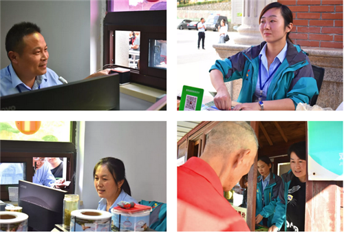 售票人員熱情的為游客辦理入園手續(xù)。