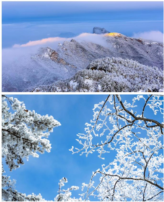 無論是陰天還是晴天,千姿百態(tài)的霧凇,都把整座白云山裝點(diǎn)的晶瑩剔透。