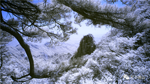 雪花,像精靈一般在峰林間曼舞輕揚(yáng),奇峰怪石、流泉飛瀑、古樹名木、亭臺(tái)樓閣籠上一層厚厚潔白,盡顯冰清玉潔的仙姿,瑟瑟的冷逸之美,給人一種和平寧靜的感受,一種清新溫柔的撫慰。