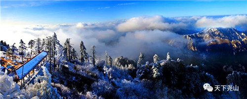 以伏牛神話為底色的山水勝景,在雪的裝扮下,如瑤臺(tái)仙境般美妙。千山萬壑,粉妝玉琢,皓色熒熒;天宇大地,寒霧氤氳,蒼蒼茫茫。