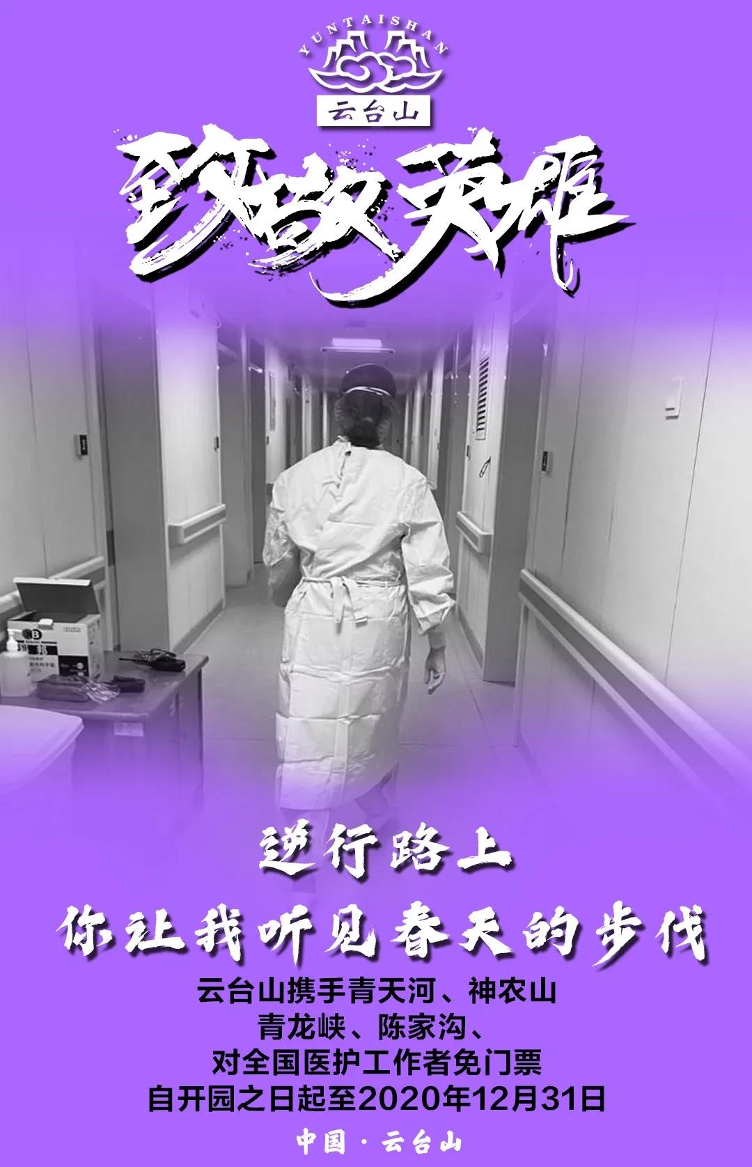 同時(shí),云臺(tái)山景區(qū)推出2020年對(duì)全國醫(yī)護(hù)工作者免門票的優(yōu)惠,號(hào)召民宿業(yè)主捐贈(zèng)了2000間客房,免費(fèi)提供給醫(yī)護(hù)人員入住。