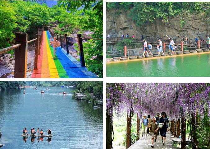 景區(qū)內還有各種游玩項目,水上摩托艇、水上飛人、竹筏泛舟、漂流等。