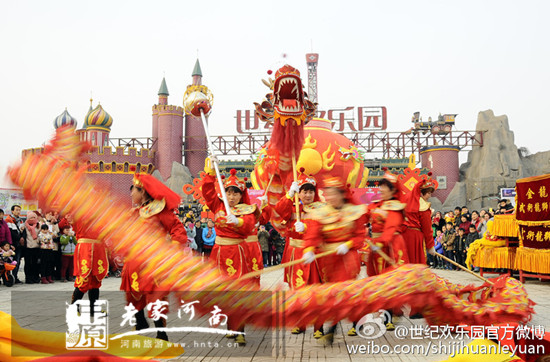 世紀(jì)歡樂園廟會(huì)上,來自廣東佛山黃飛鴻第五代弟子所表演的舞獅特技,帶你見識(shí)正宗的舞獅子,感受節(jié)日的喜慶,當(dāng)然,傳統(tǒng)民俗表演還有川劇變臉、舞蹈、戲曲、小丑喜劇雜耍、噴火、飛斧等讓你目瞪口呆的節(jié)目。這么棒的節(jié)目不止晚上有,白天也有呢!