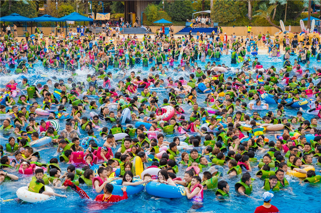 銀基冰雪酒店針對(duì)家庭度假游客,推出了五彩繩DIY,教小朋友們包粽子,制作粽子背包,假日期間酒店室外泳池也面向住宿游客免費(fèi)開(kāi)放,讓家庭游客在度假的同時(shí),體驗(yàn)端午傳統(tǒng)民俗,參與體驗(yàn)諸多親子活動(dòng)。銀基樂(lè)海水世界端午假期更是人氣爆棚,三天入園近6萬(wàn)人次,巨型沖浪場(chǎng)地、上百種頂尖玩水設(shè)備、高顏值男團(tuán)女團(tuán)演藝節(jié)目,讓游客們感受夏日肆意玩水的清涼和快樂(lè)。