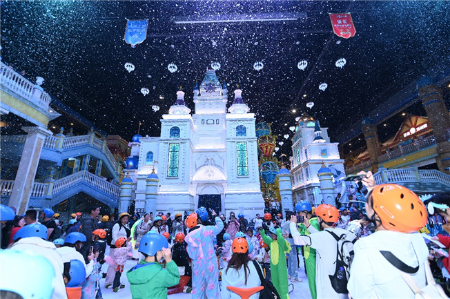 銀基冰雪世界冰湖飄雪秀吸引無(wú)數(shù)游客拍照