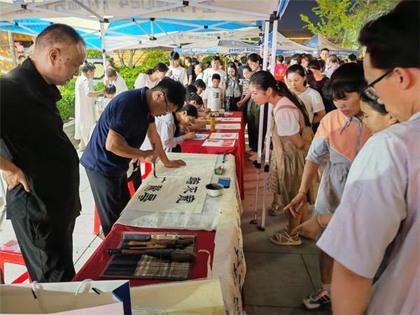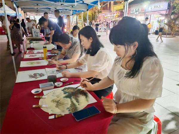 7月22日,夏日傍晚,隨著炎熱退去,在濮陽縣濮水小鎮(zhèn),散步的人們嘴角帶著笑意,游逛超IN非遺市集,或親手體驗著剪紙、秸稈畫等非遺創(chuàng)作,或邊走邊看琳瑯滿目的文創(chuàng)產(chǎn)品,滿身輕松。