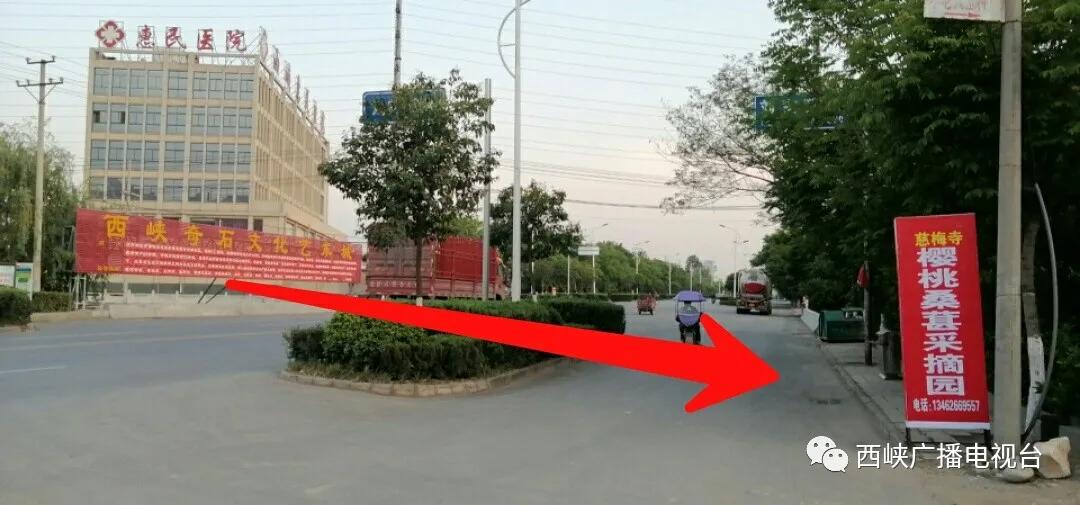 采摘園入口在東環(huán)路惠民醫(yī)院斜對面,按圖中箭頭指向的這條路直走300米。