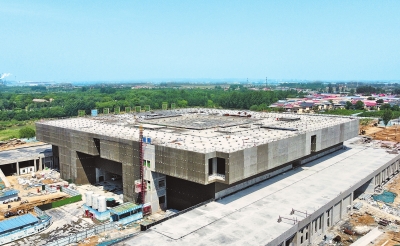5月14日,記者來到位于安陽市殷都區(qū)洹河北岸的殷墟遺址博物館項(xiàng)目現(xiàn)場,只見“大鼎”形主體建筑赫然矗立于中央,幾十名工人穿梭于樓體中各個區(qū)域,正在進(jìn)行最后的二次結(jié)構(gòu)收尾工作。