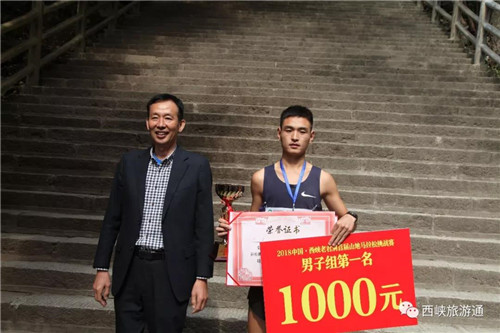 西峽縣旅游領(lǐng)導(dǎo)小組領(lǐng)導(dǎo)袁寶峰同志為男子組第一名頒獎