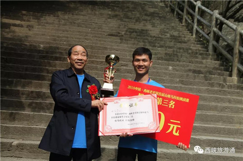 西峽縣旅游領(lǐng)導(dǎo)小組領(lǐng)導(dǎo)黃為民同志為男子組第二名頒獎