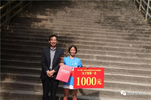 西峽縣旅游領(lǐng)導(dǎo)小組領(lǐng)導(dǎo)袁寶峰同志為女子組第一名頒獎